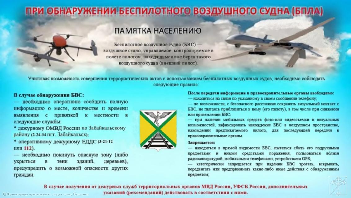 instrukciya_opri_obnaruzhenii_bla.docx Скачать файл. 20.55 КБ instrukciya_opri_obnaruzhenii_bla.docx 5 просмотров Перекрёстные ссылки книги для 10.07.2025г. ИНСТРУКЦИЯ о порядке действий при обнаружении беспилотного воздушного судна в воздушном пространстве над территорией муниципального округа город Партизанск Приморского края ‹ Памятка "Действия при угрозе теракта на железнодорожном транспорте" 06.06.2025г. Вверх 17.07.2025г. ИНСТРУКЦИЯ о порядке действий при обнаружении беспилотного воздушного судна в воздушном пространстве над территорией муниципального округа город Партизанск Приморского края ›
