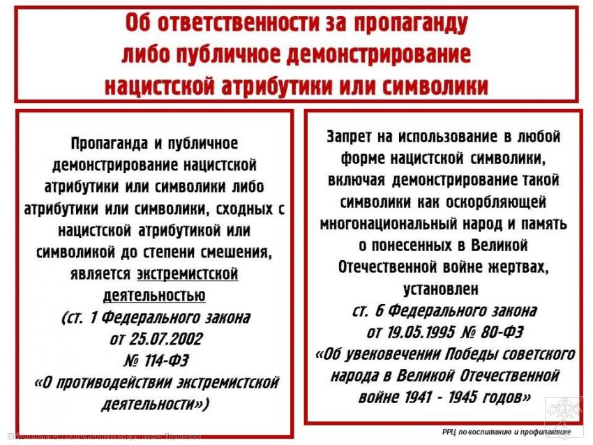10.04.2026г. Памятка населению «Ответственность за использование нацистской символики» | Администрация муниципального округа город Партизанск Приморского края