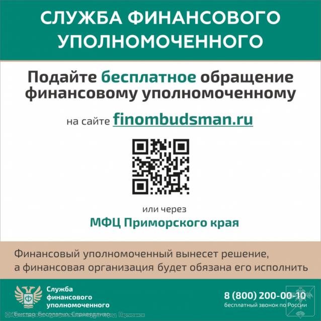 Если спор с финансовой организацией не урегулирован – подайте обращение финансовому уполномоченному на его официальном сайте или через МФЦ Приморского края