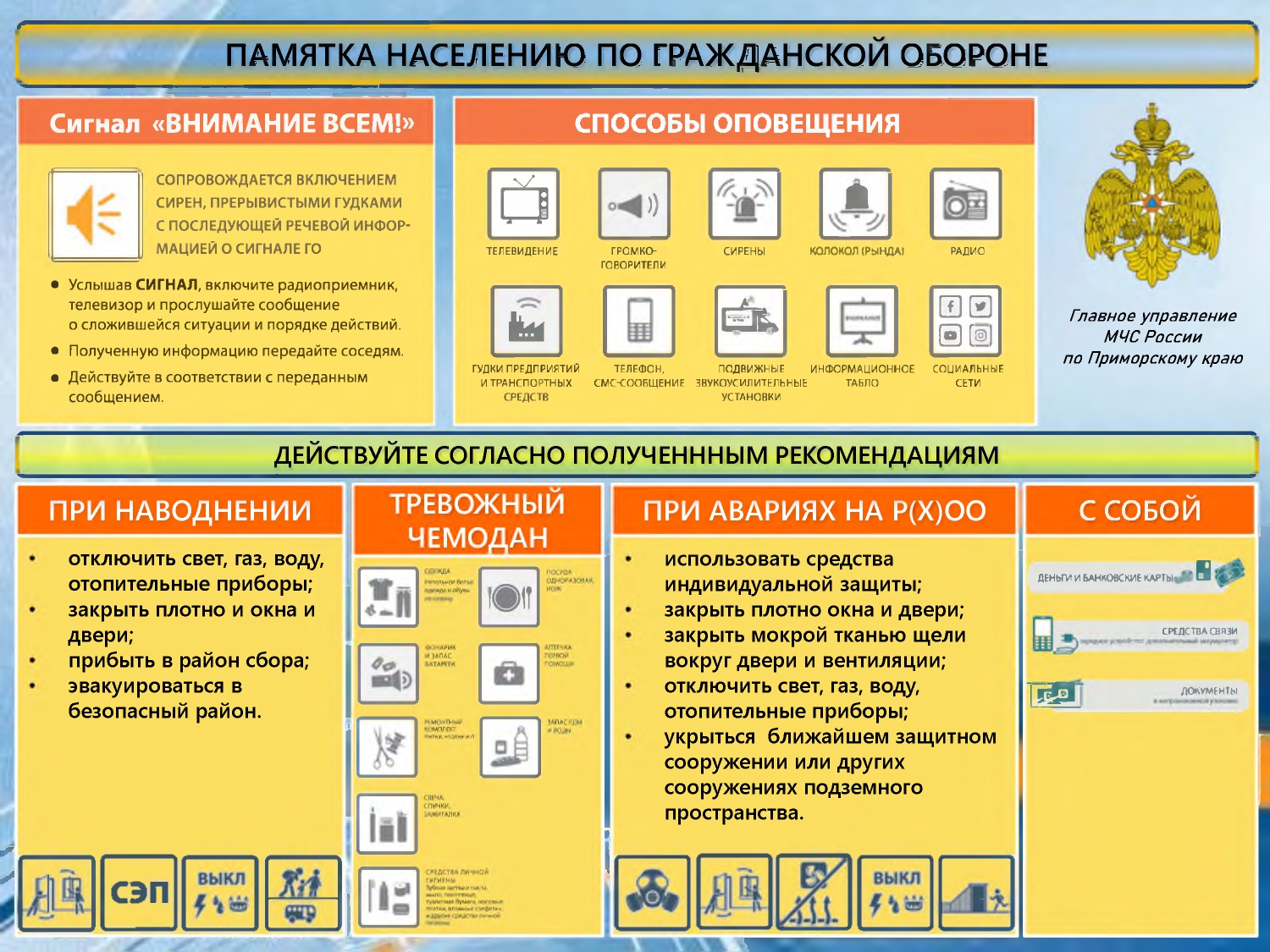 1030 просмотров Перекрёстные ссылки книги для Памятка населению по гражданской обороне ‹ Памятка "О мерах безопасности на водных объектах в летний период" Вверх Памятка населению по гражданской обороне ›
