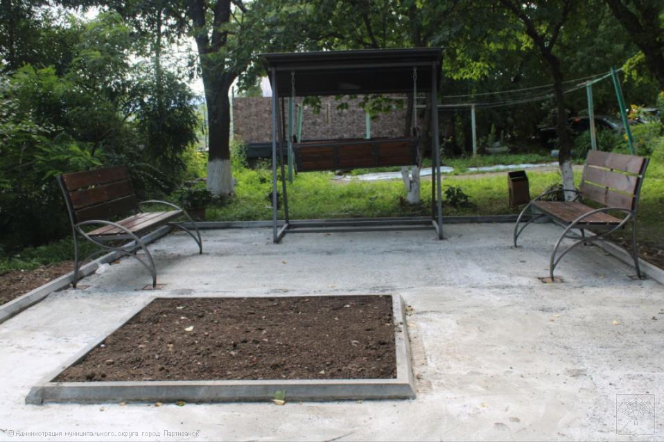 Создан сквер «Гармония души» с мягким покрытие, обновленными малыми формами, скамейками и диван-качелей. За счет собственных средств установлена дополнительная скамейка, две урны, стенд для дартса и стенд для игры серсо.