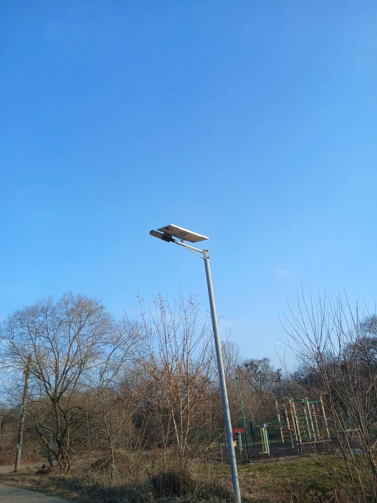 Установлено 20 опор и фонарей освещения на солнечных батареях.