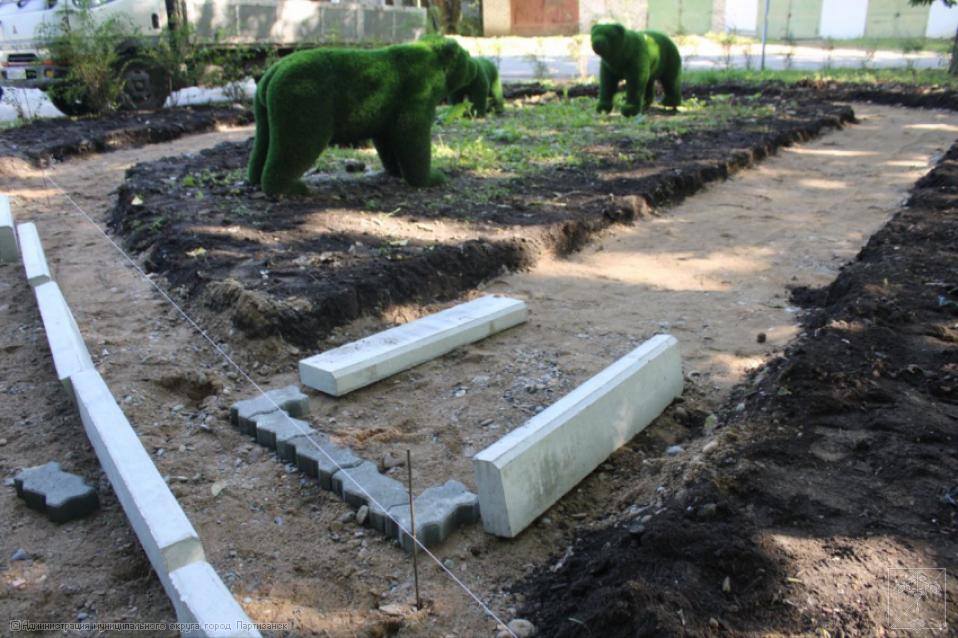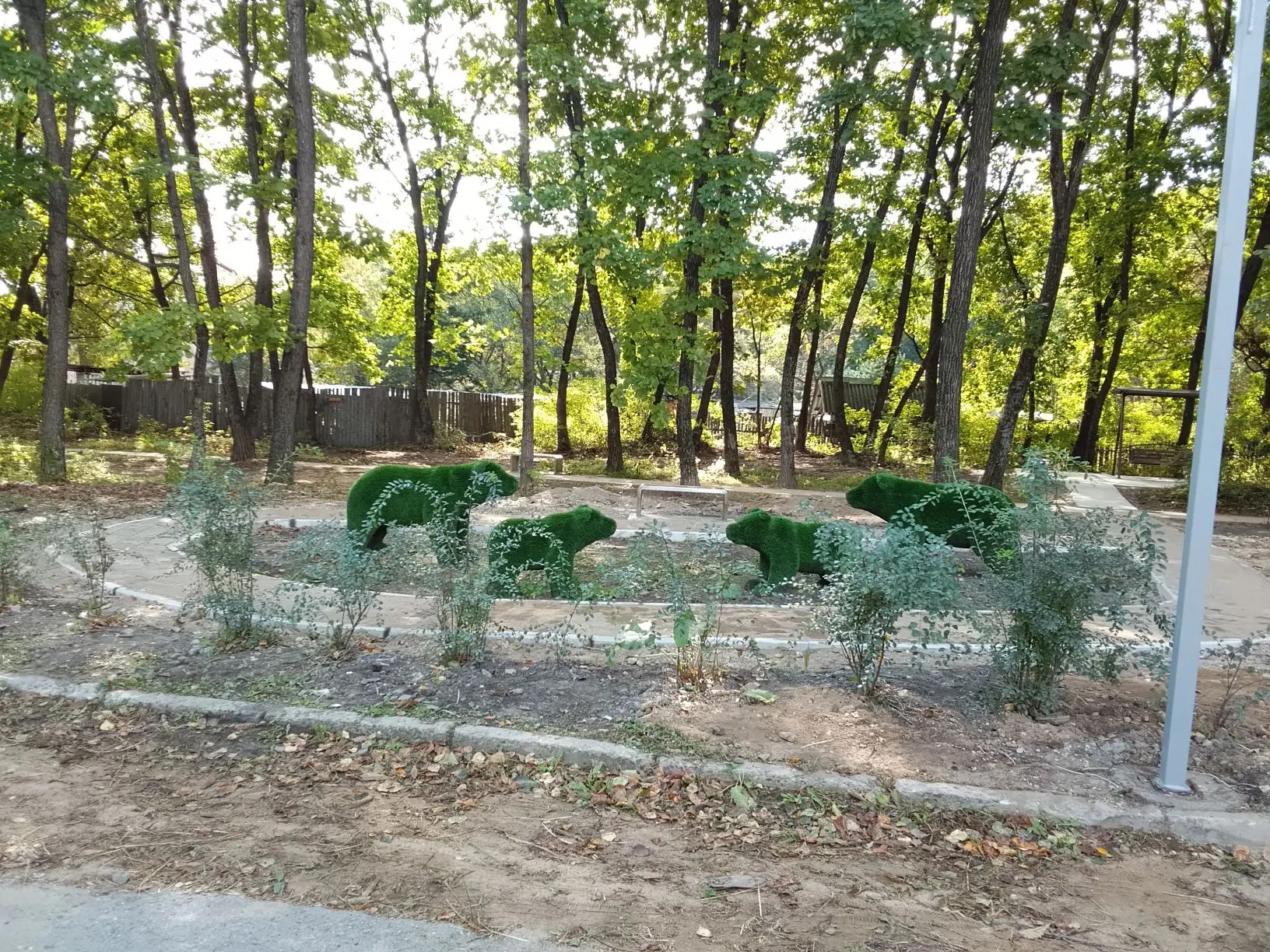 Благоустроен сквер «В гармонии с природой», путем установки 4 скамеек, 3 урн, 1 качели, 3 светящихся фонтанов и брусчатой дорожки вокруг топиарной композиции «Семья медведей».